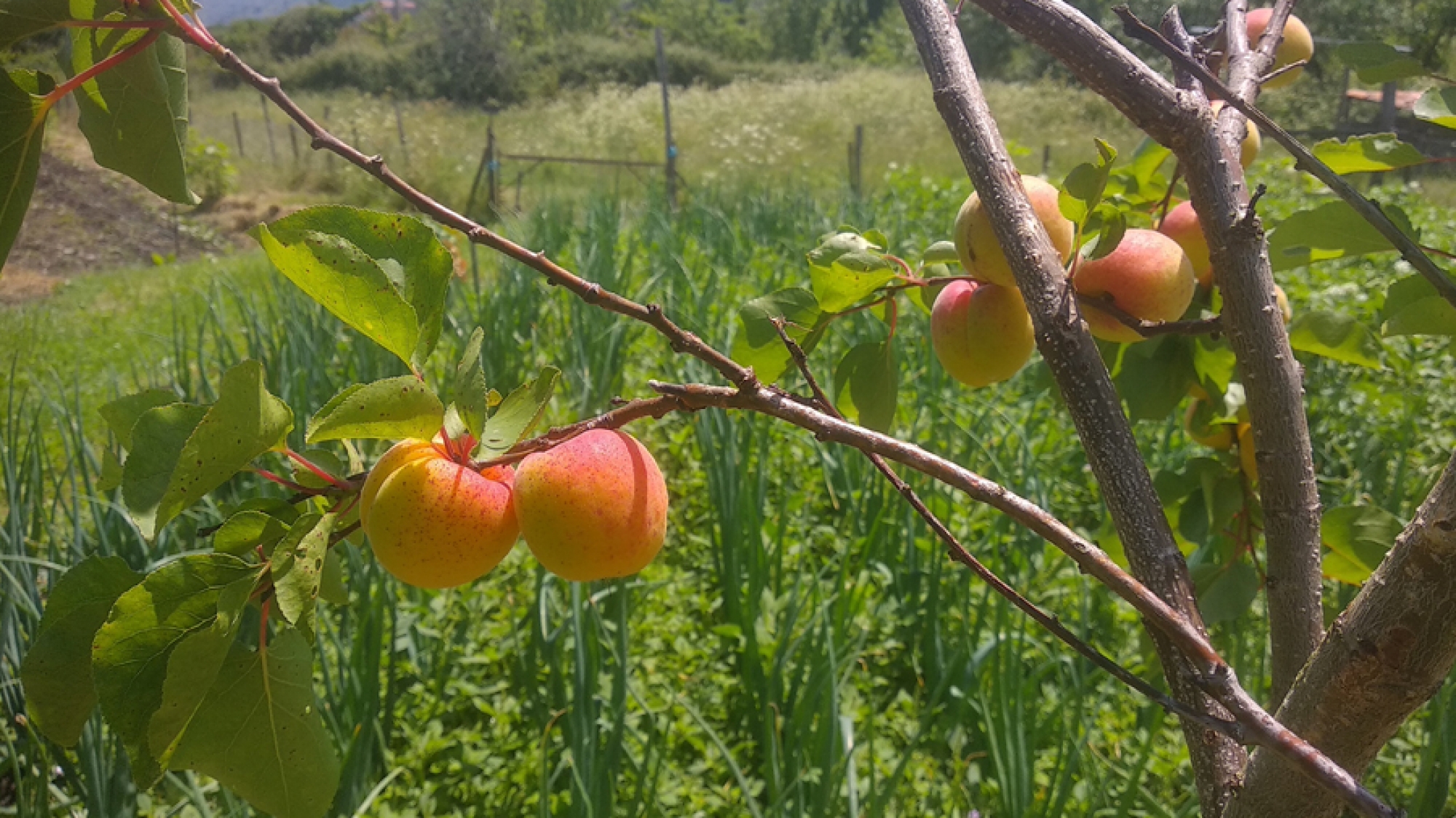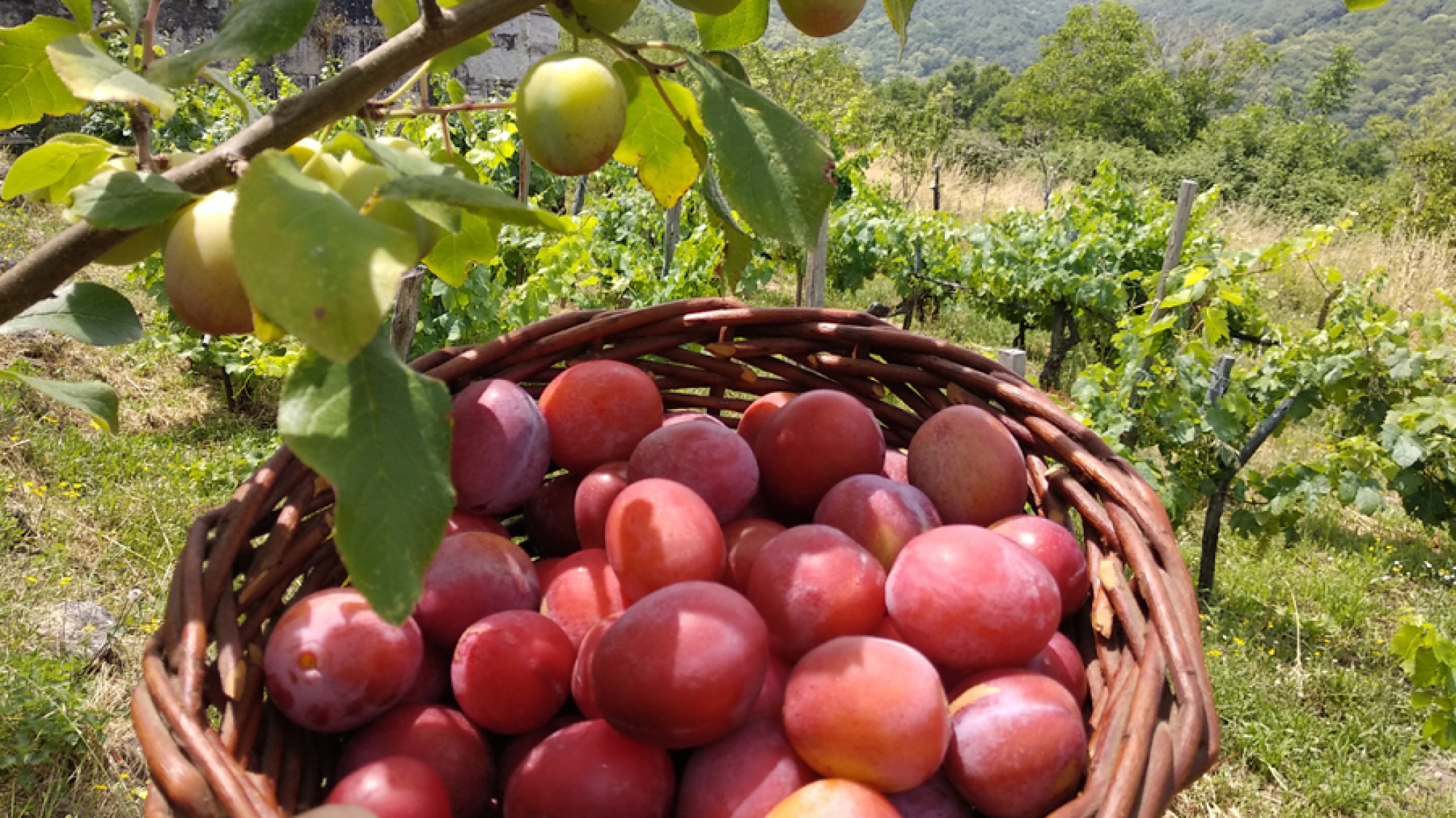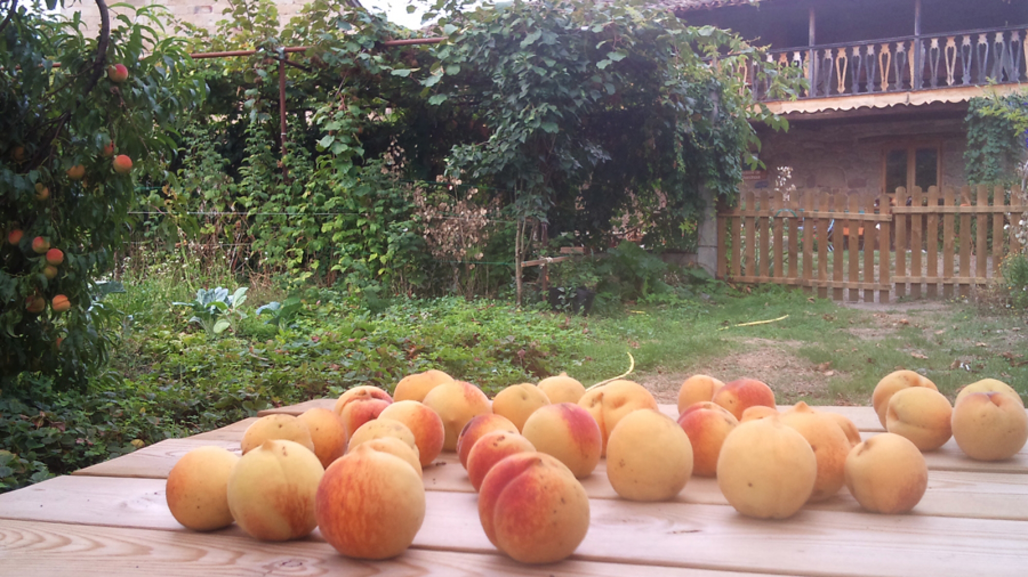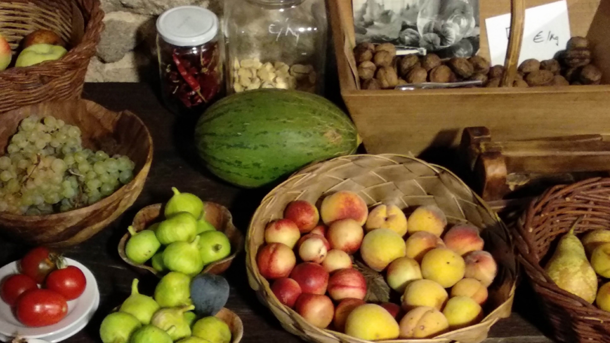 Fruta y tomate eco son de producción propia y sino comprada, así como sus conservas: mermeladas y zumos; también frutos secos: nueces avellanas, castañas; huevos de nuestras gallinas camperas y alimentación eco; elaboramos también embutidos de cerdo celta.